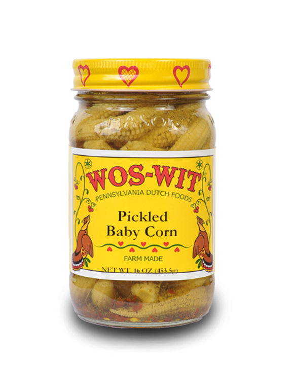 Delicate baby corn is pickled to perfection and ready for your best veggie tray.